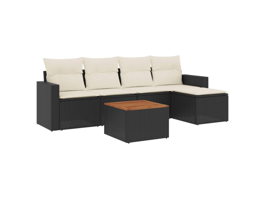 vidaXL 6-dielna záhradná súprava pohoviek s vankúšmi čierna polyratan