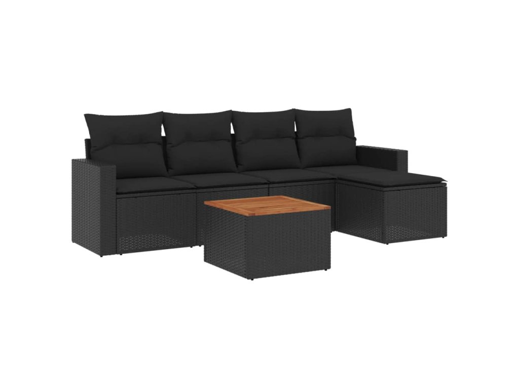 vidaXL 6-dielna záhradná súprava pohoviek s vankúšmi čierna polyratan