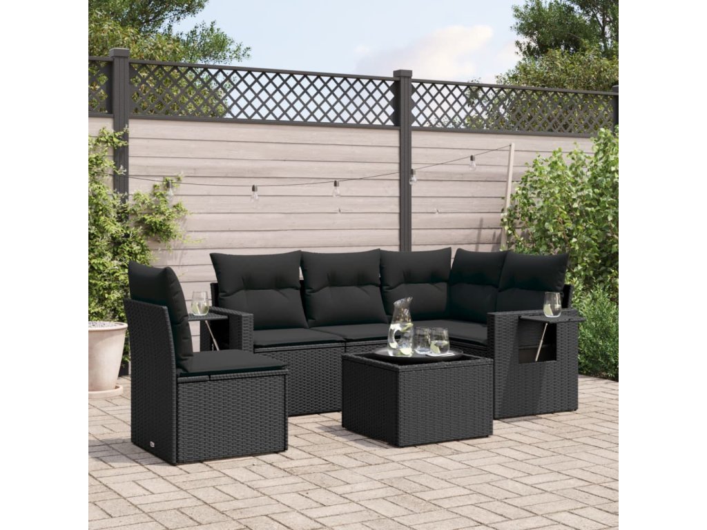 vidaXL 6-dielna záhradná súprava pohoviek s vankúšmi čierna polyratan
