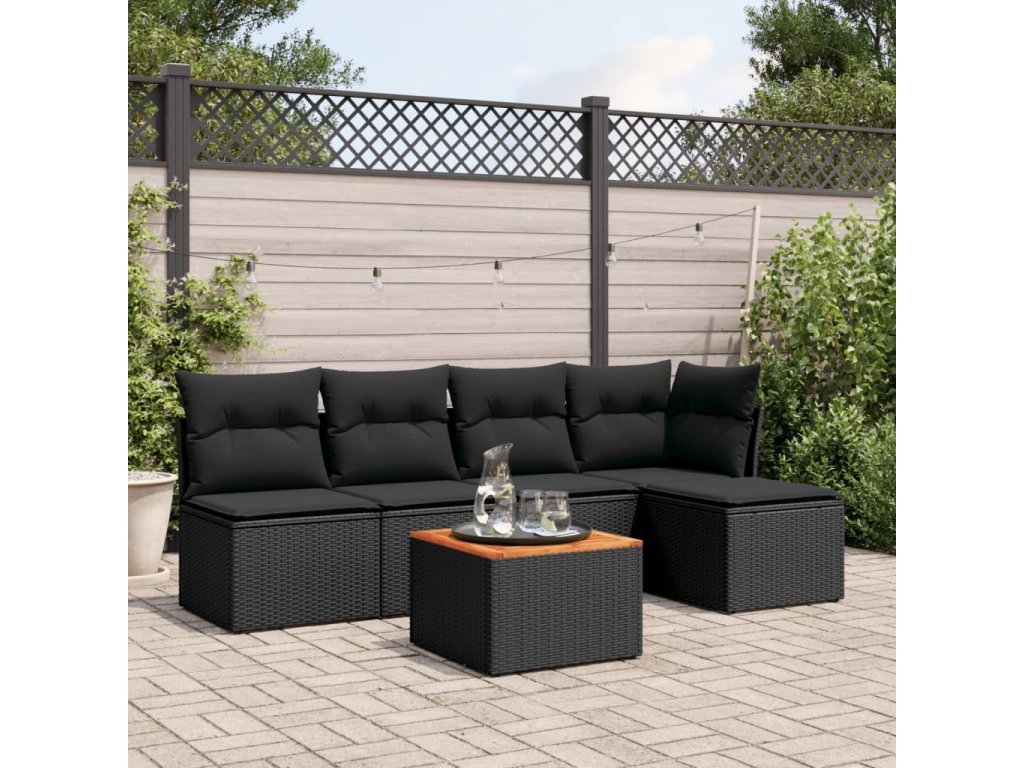 vidaXL 6-dielna záhradná súprava pohoviek s vankúšmi čierna polyratan