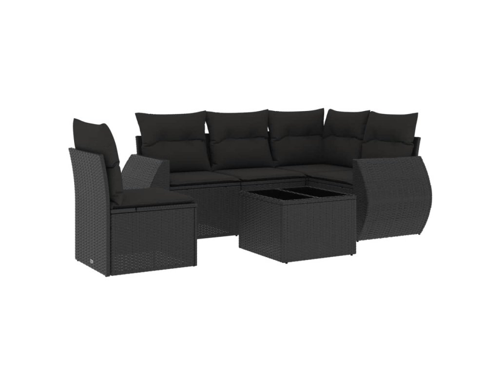 vidaXL 6-dielna záhradná súprava pohoviek s vankúšmi čierna polyratan