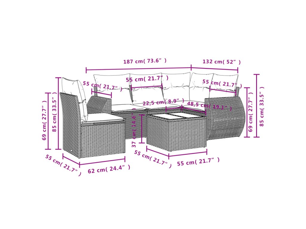 - Modulárny dizajn: Táto súprava vonkajšieho nábytku má modulárny dizajn, vďaka čomu je úplne flexibilná a ľahko sa premiestňuje, takže si môžete vytvoriť prispôsobené usporiadanie vonkajšieho nábytku.