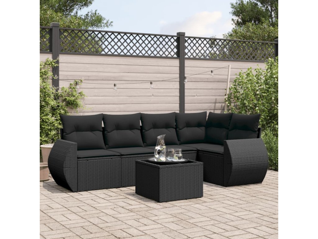 vidaXL 6-dielna záhradná súprava pohoviek s vankúšmi čierna polyratan