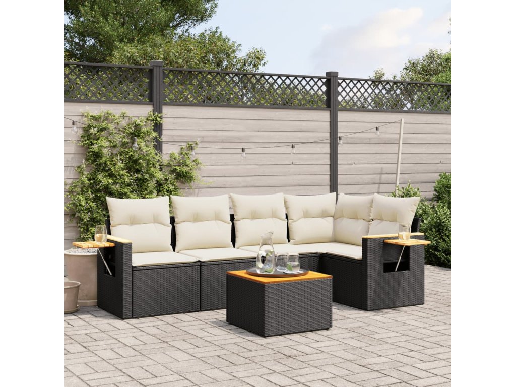 vidaXL 6-dielna záhradná súprava pohoviek s vankúšmi čierna polyratan