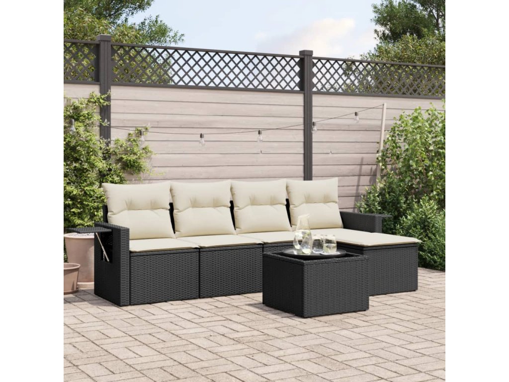 vidaXL 6-dielna záhradná súprava pohoviek s vankúšmi čierna polyratan