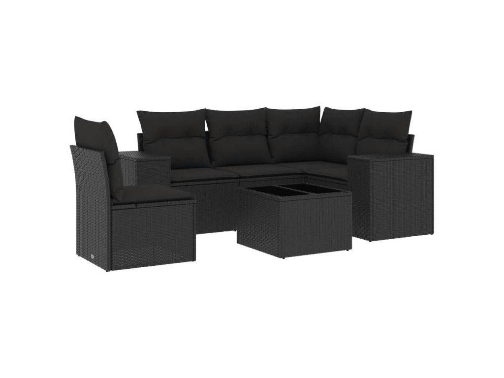 vidaXL 6-dielna záhradná súprava pohoviek s vankúšmi čierna polyratan