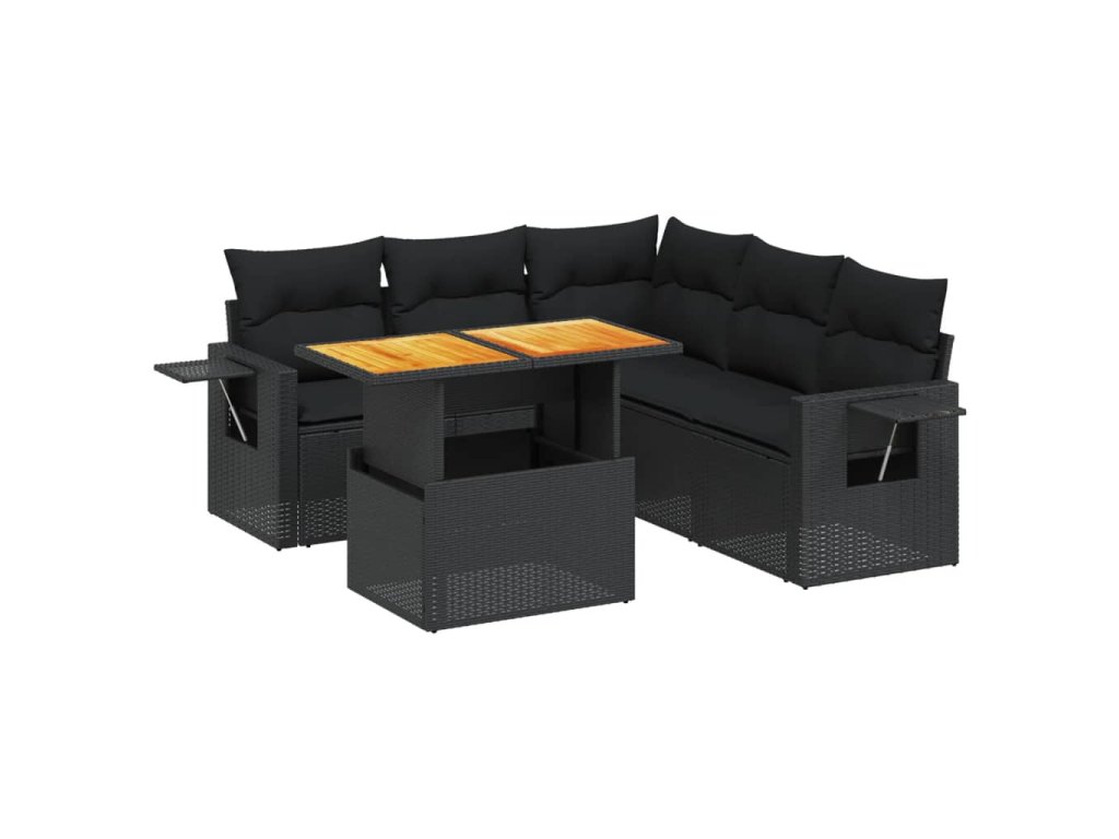 vidaXL 6-dielna záhradná súprava pohoviek s vankúšmi čierna polyratan