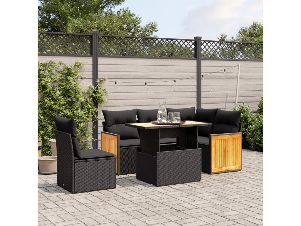 vidaXL 6-dielna záhradná súprava pohoviek s vankúšmi čierna polyratan