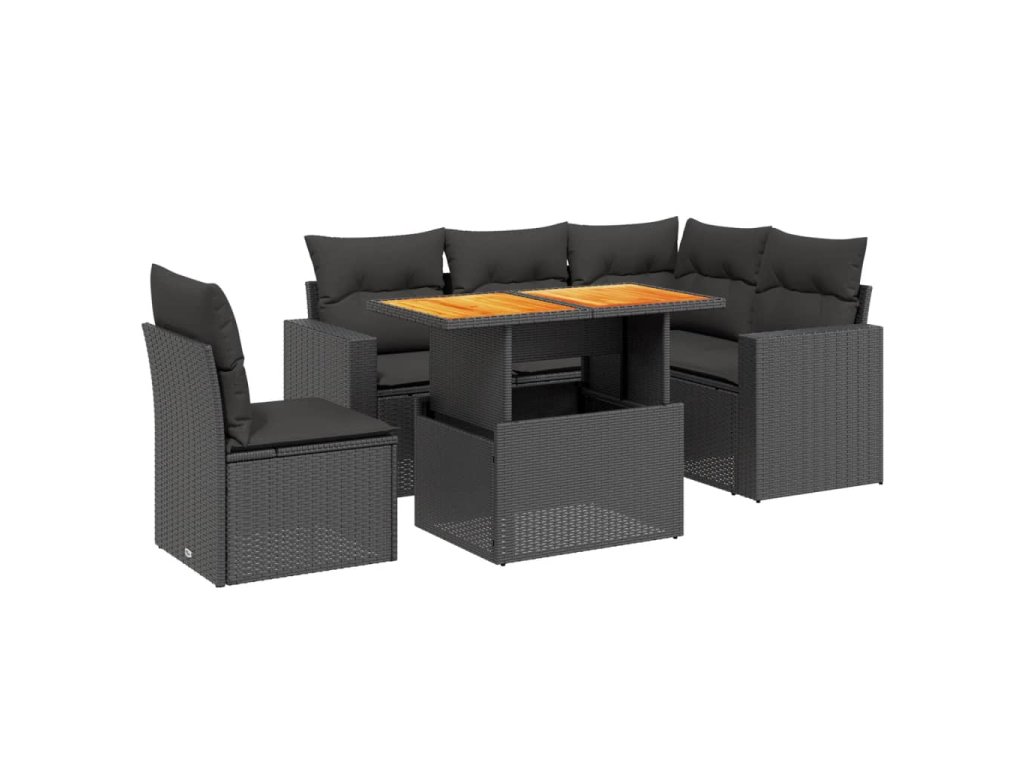 vidaXL 6-dielna záhradná súprava pohoviek s vankúšmi čierna polyratan