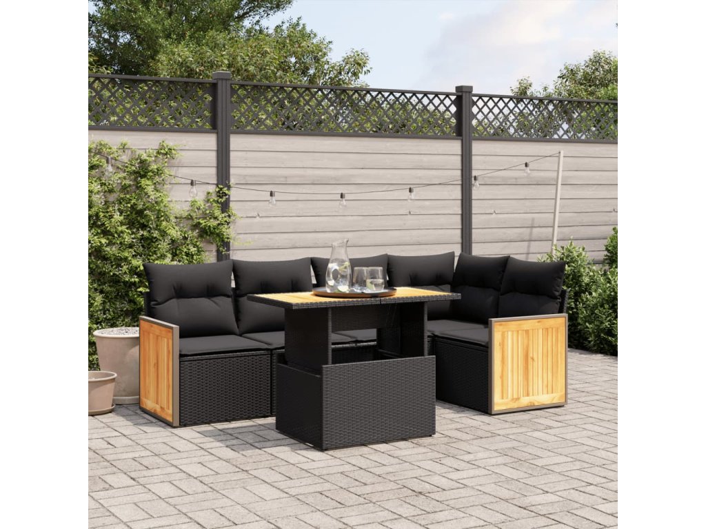 vidaXL 6-dielna záhradná súprava pohoviek s vankúšmi čierna polyratan