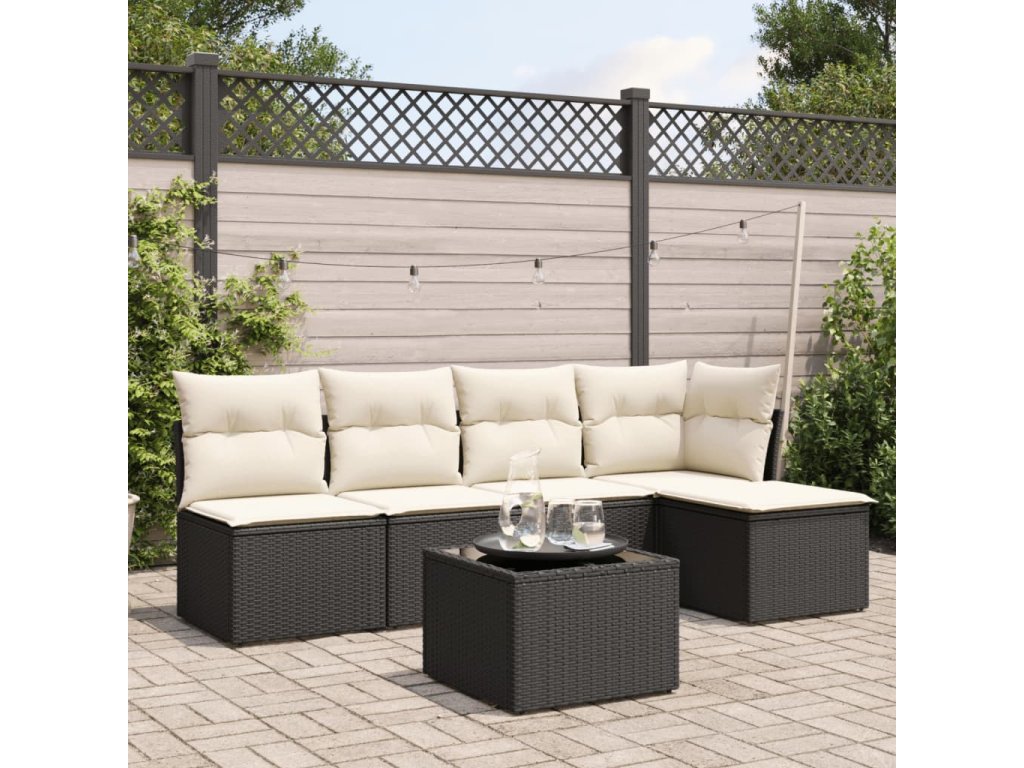 vidaXL 6-dielna záhradná súprava pohoviek s vankúšmi čierna polyratan