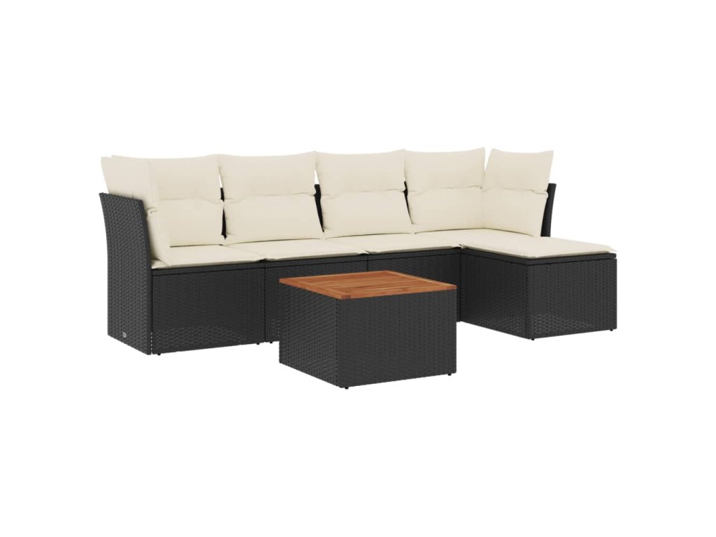 vidaXL 6-dielna záhradná súprava pohoviek s vankúšmi čierna polyratan