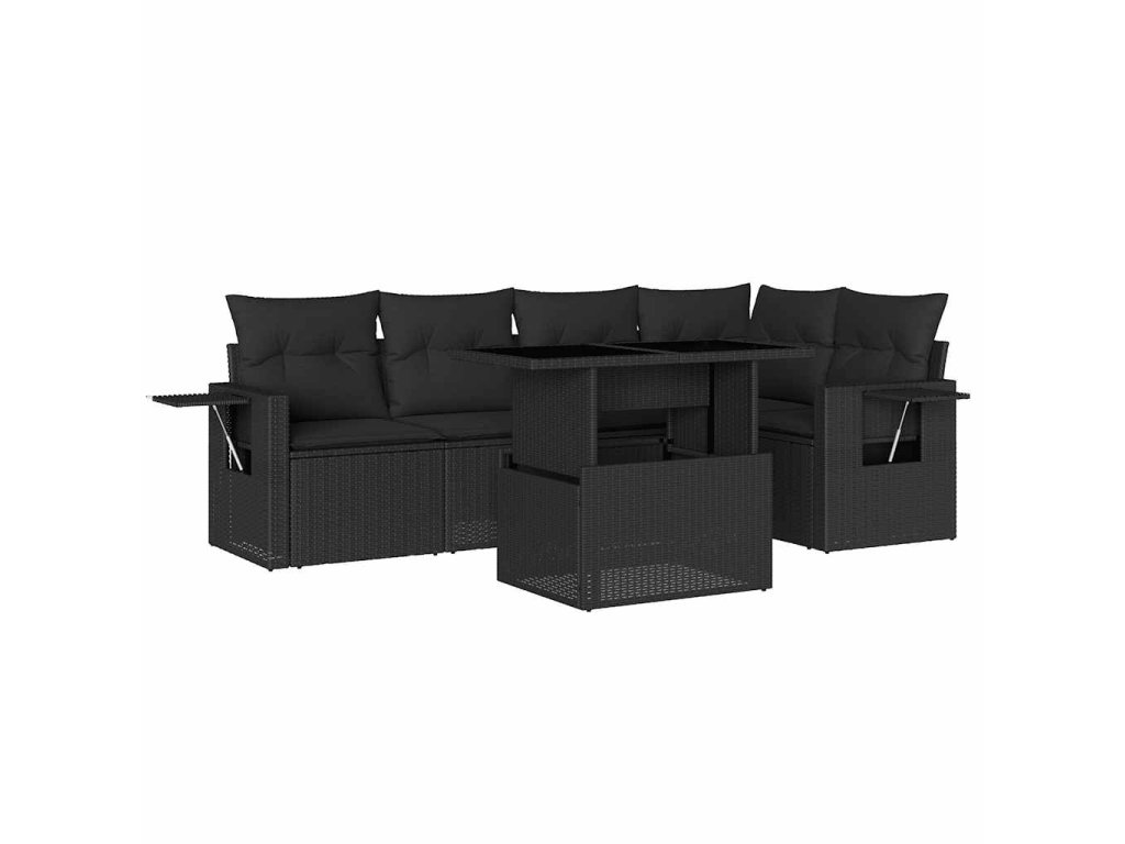 vidaXL 6-dielna záhradná súprava pohoviek s vankúšmi čierna polyratan