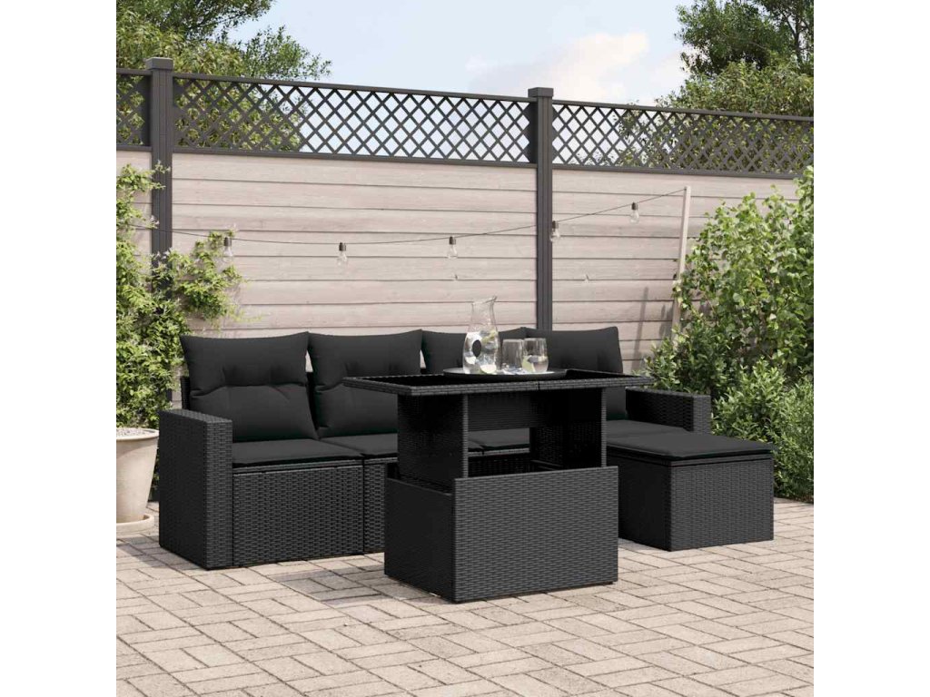 vidaXL 6-dielna záhradná súprava pohoviek s vankúšmi čierna polyratan