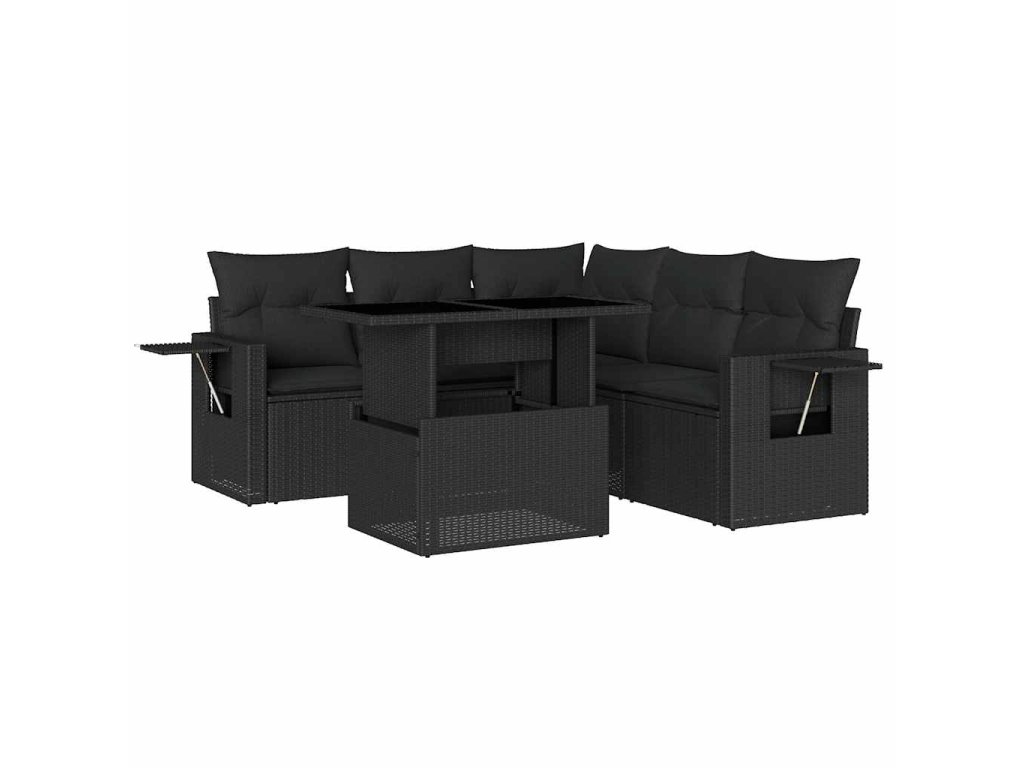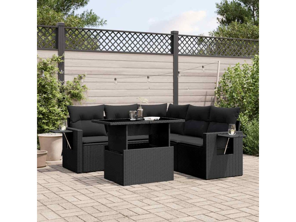 vidaXL 6-dielna záhradná súprava pohoviek s vankúšmi čierna polyratan