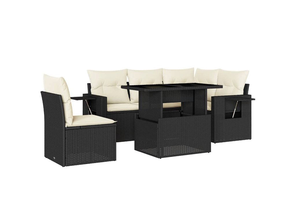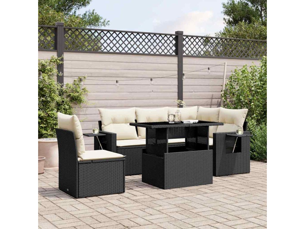 vidaXL 6-dielna záhradná súprava pohoviek s vankúšmi čierna polyratan