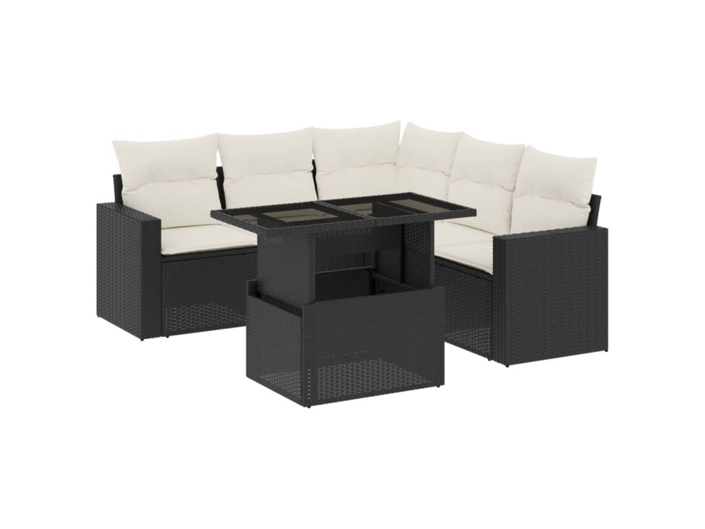 vidaXL 6-dielna záhradná súprava pohoviek s vankúšmi čierna polyratan