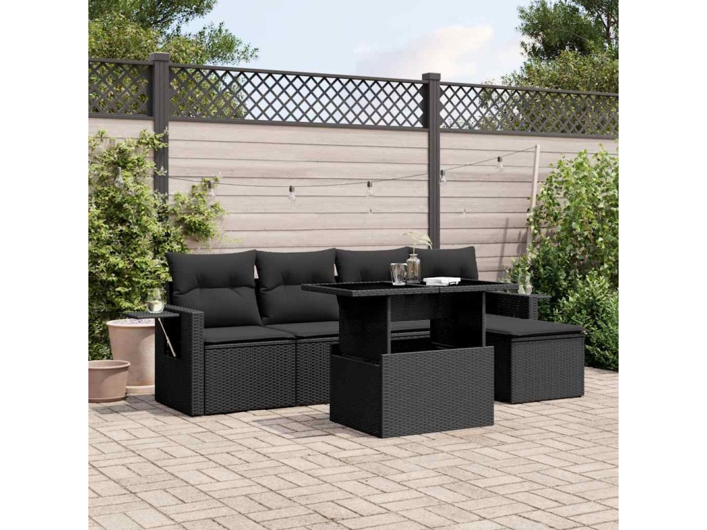 vidaXL 6-dielna záhradná súprava pohoviek s vankúšmi čierna polyratan