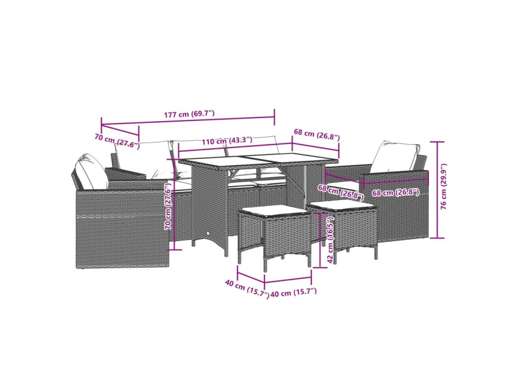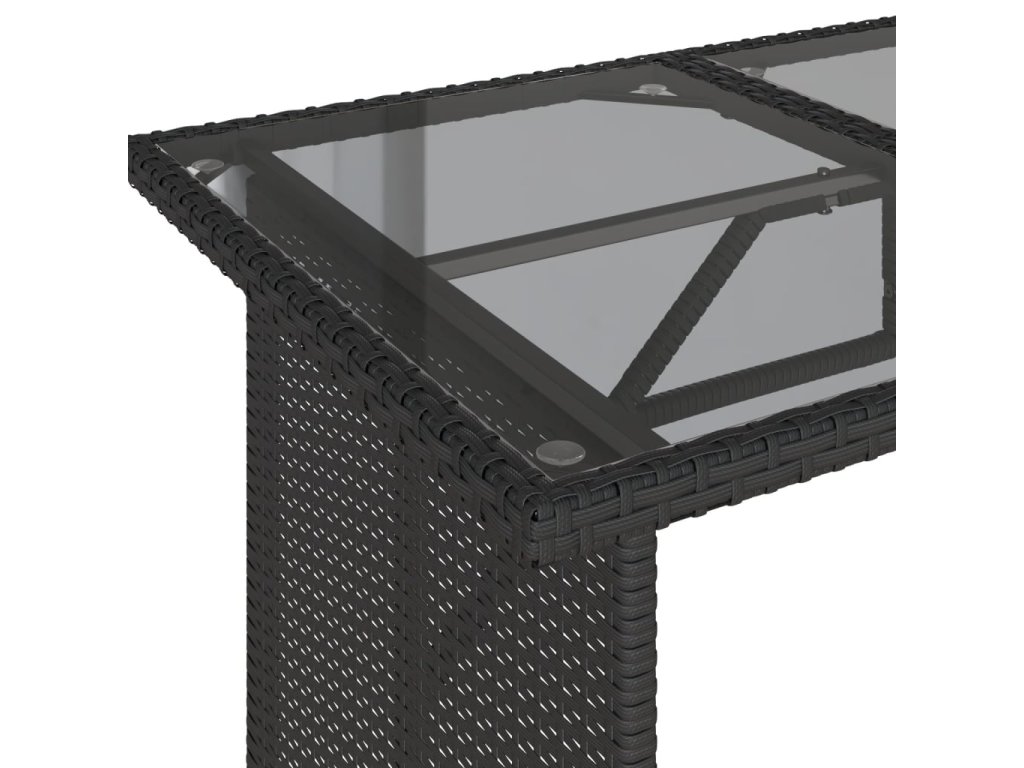 - Materiál: PE ratan, oceľ s práškovou povrchovou úpravou, tvrdené sklo
