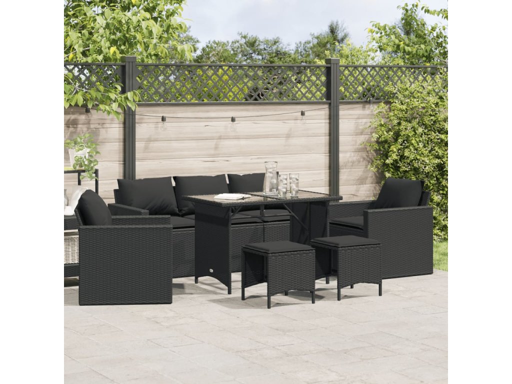 vidaXL 6-dielna záhradná súprava pohoviek s vankúšmi čierna polyratan