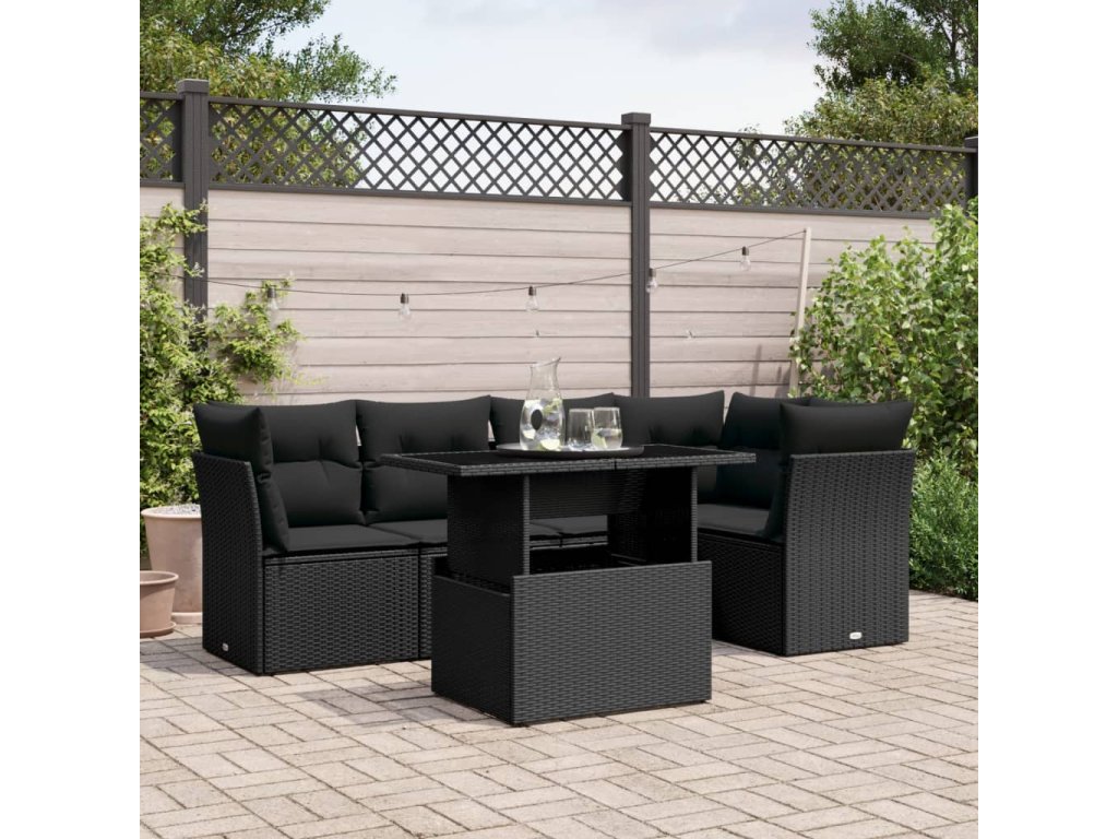 vidaXL 6-dielna záhradná súprava pohoviek s vankúšmi čierna polyratan