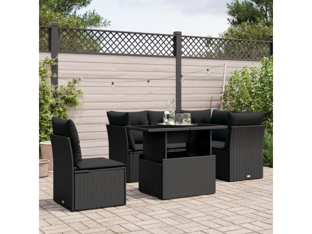 vidaXL 6-dielna záhradná súprava pohoviek s vankúšmi čierna polyratan