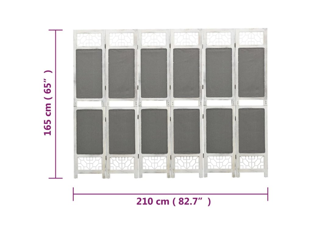 Tento voľne stojaci a elegantný 6-panelový paraván sa dá použiť na dekoráciu alebo ako oddeľovacia priečka. Je ideálny na umiestnenie do spálne a vytvorenie oddeleného súkromného šatníka alebo na oddelenie časti miestnosti. Okrem toho má rám z masívneho dreva paulovnie a je pokrytý trvácnou látkou. Dá sa jednoducho poskladať, aby sa ušetrilo miesto, keď sa nepoužíva.