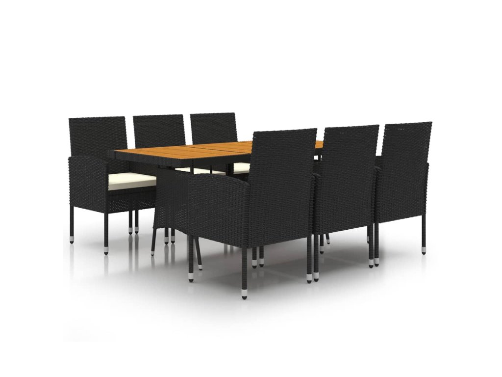 vidaXL 7-dielna vonkajšia jedálenská súprava polyratan čierna