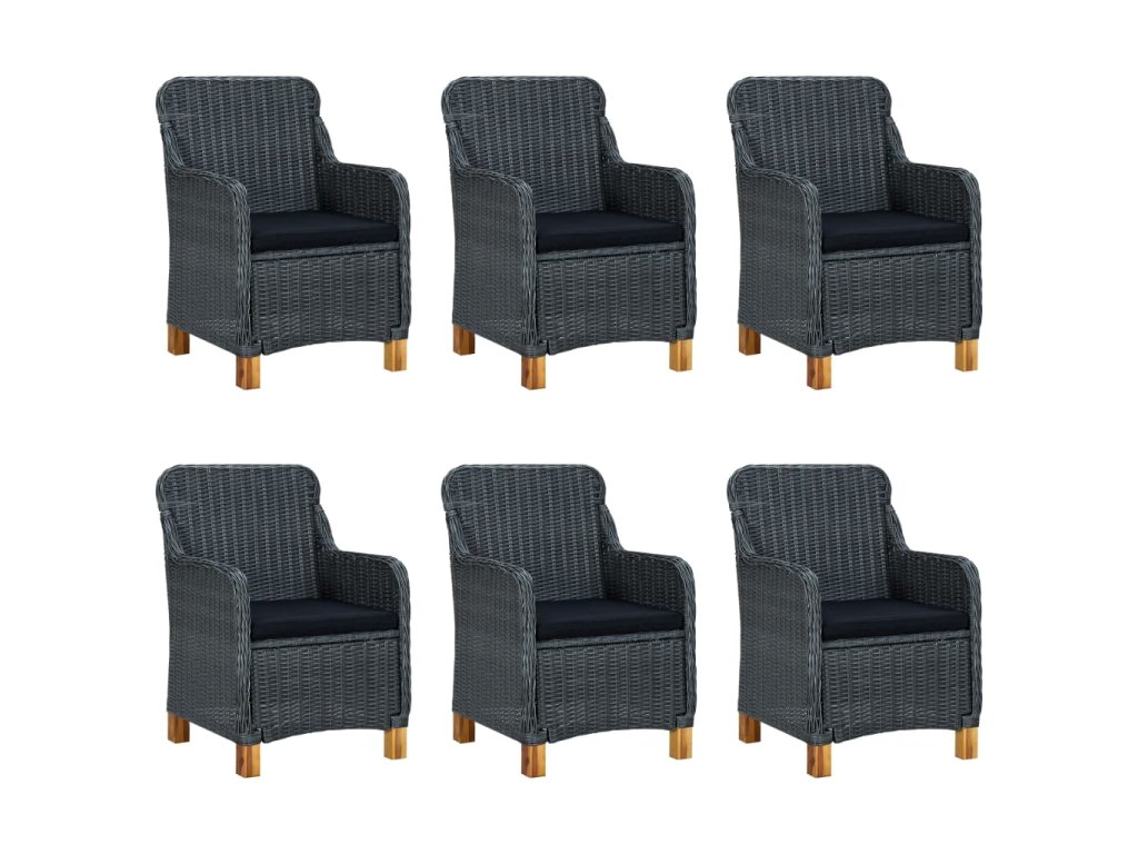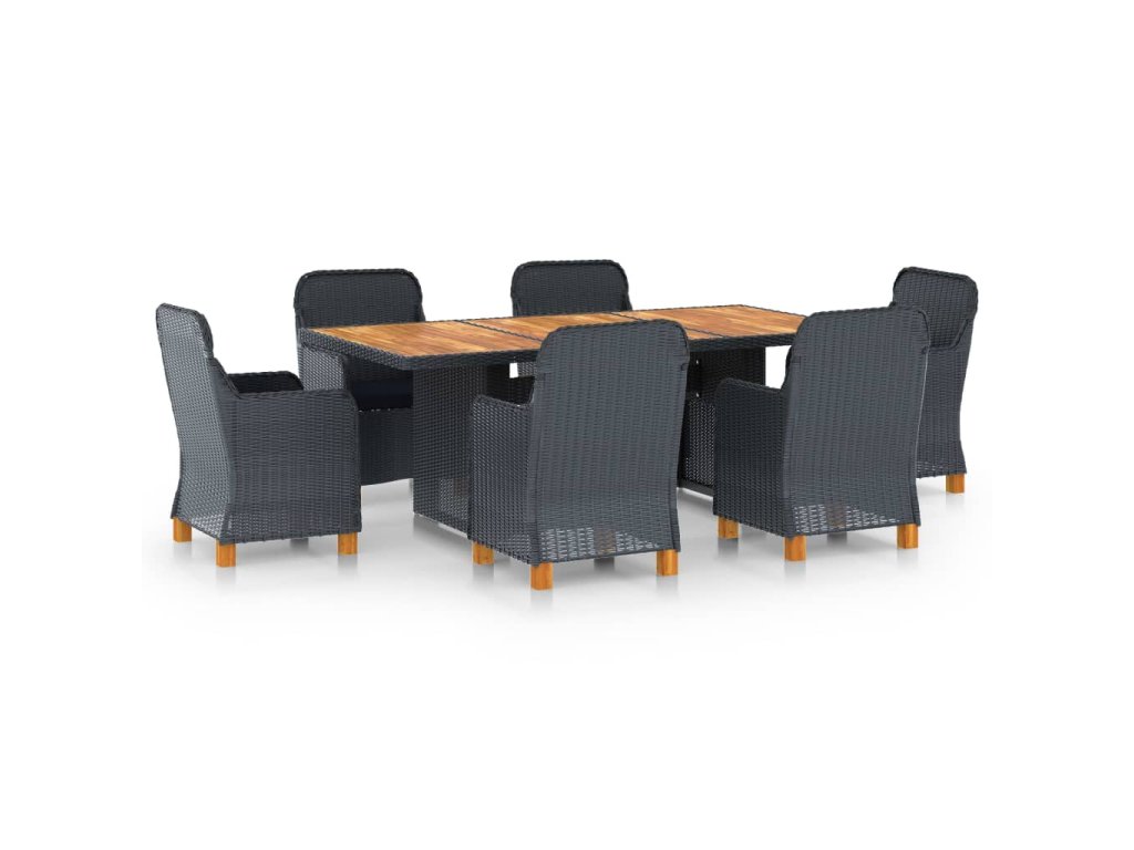 vidaXL 7-dielna vonkajšia jedálenská súprava s podložkami polyratan tmavosivá