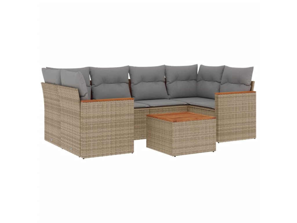 vidaXL 7-dielna záhr. jedálenská sada s vankúšmi mix béžovej polyratan