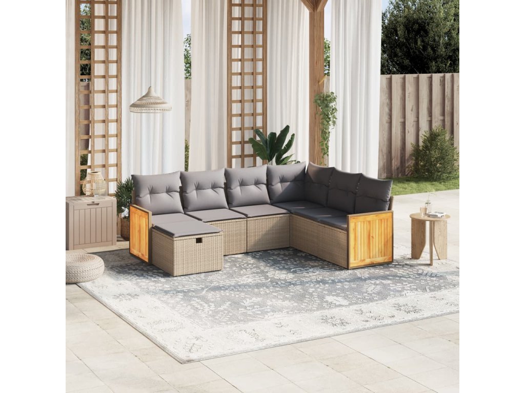 vidaXL 7-dielna záhr. jedálenská sada s vankúšmi mix béžovej polyratan