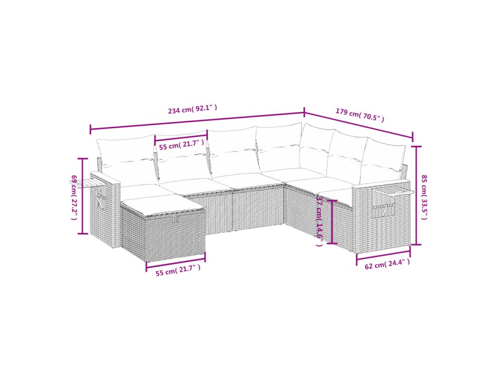 vidaXL 7-dielna záhr. jedálenská sada s vankúšmi mix béžovej polyratan