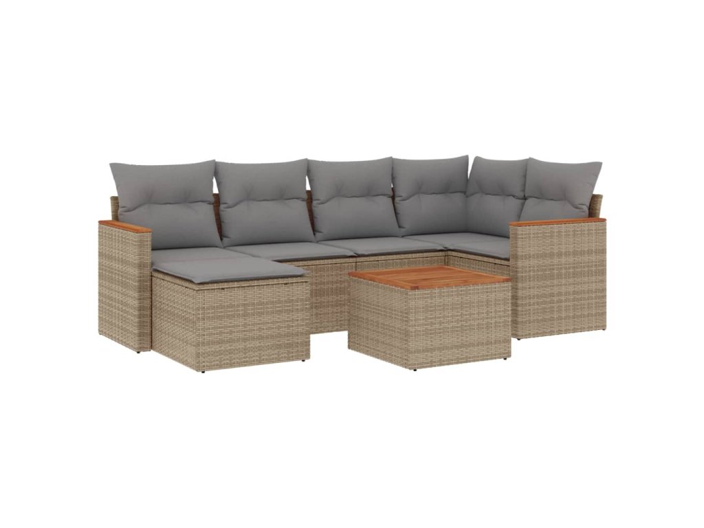 vidaXL 7-dielna záhr. jedálenská sada s vankúšmi mix béžovej polyratan