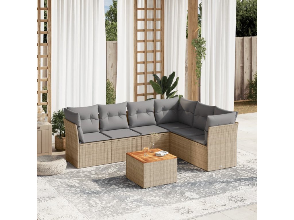 vidaXL 7-dielna záhr. jedálenská sada s vankúšmi mix béžovej polyratan