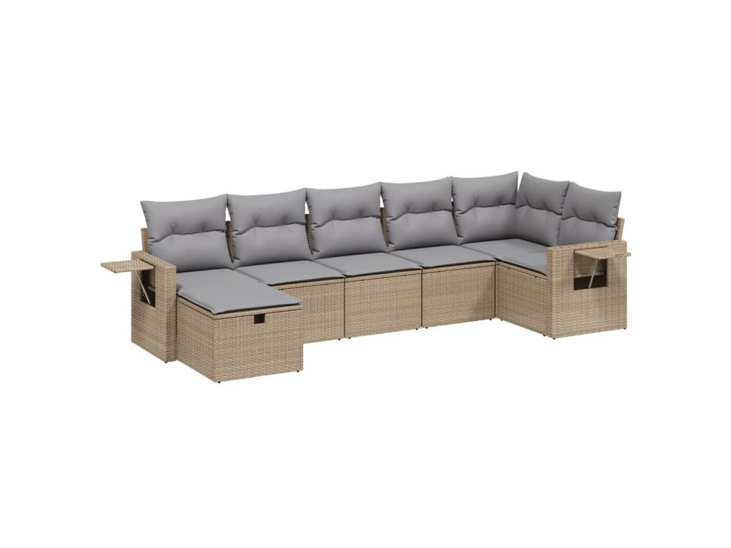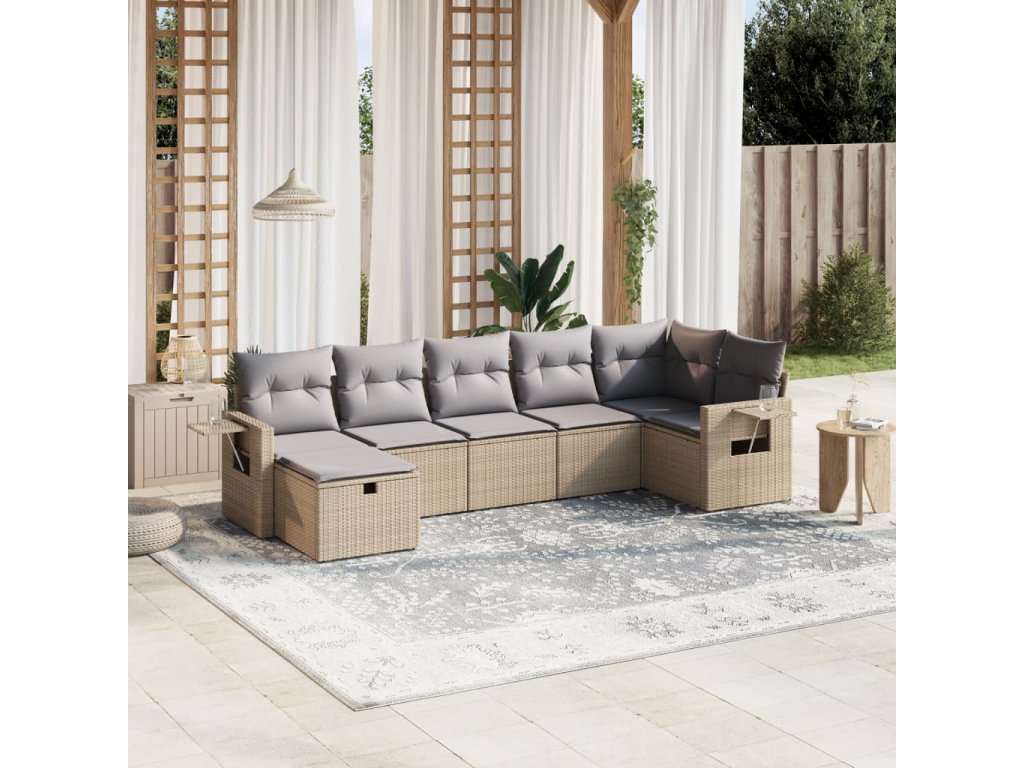 vidaXL 7-dielna záhr. jedálenská sada s vankúšmi mix béžovej polyratan