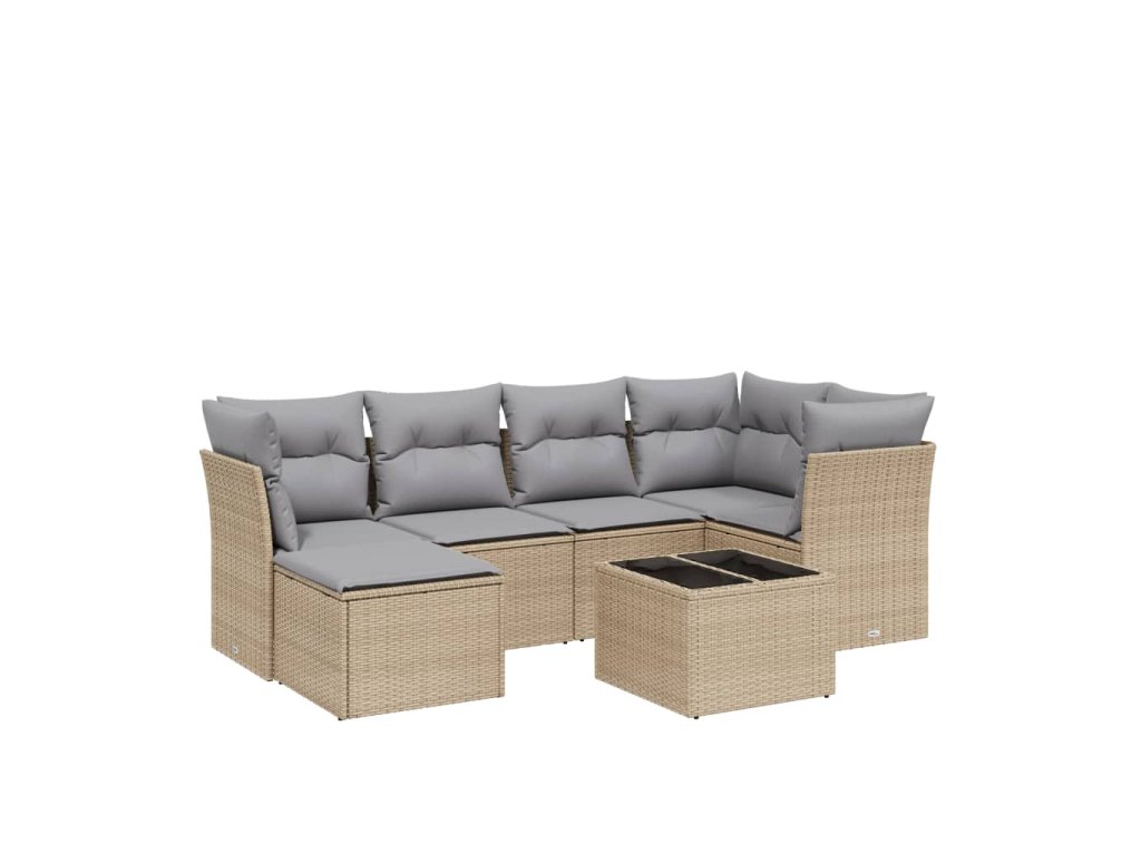 vidaXL 7-dielna záhr. jedálenská sada s vankúšmi mix béžovej polyratan