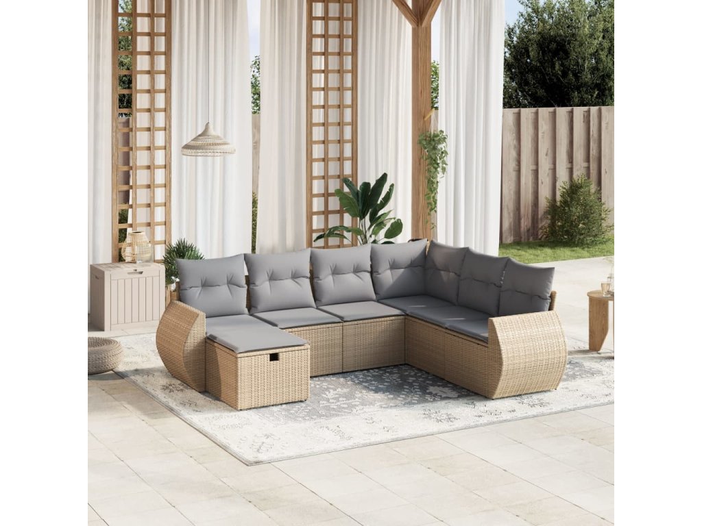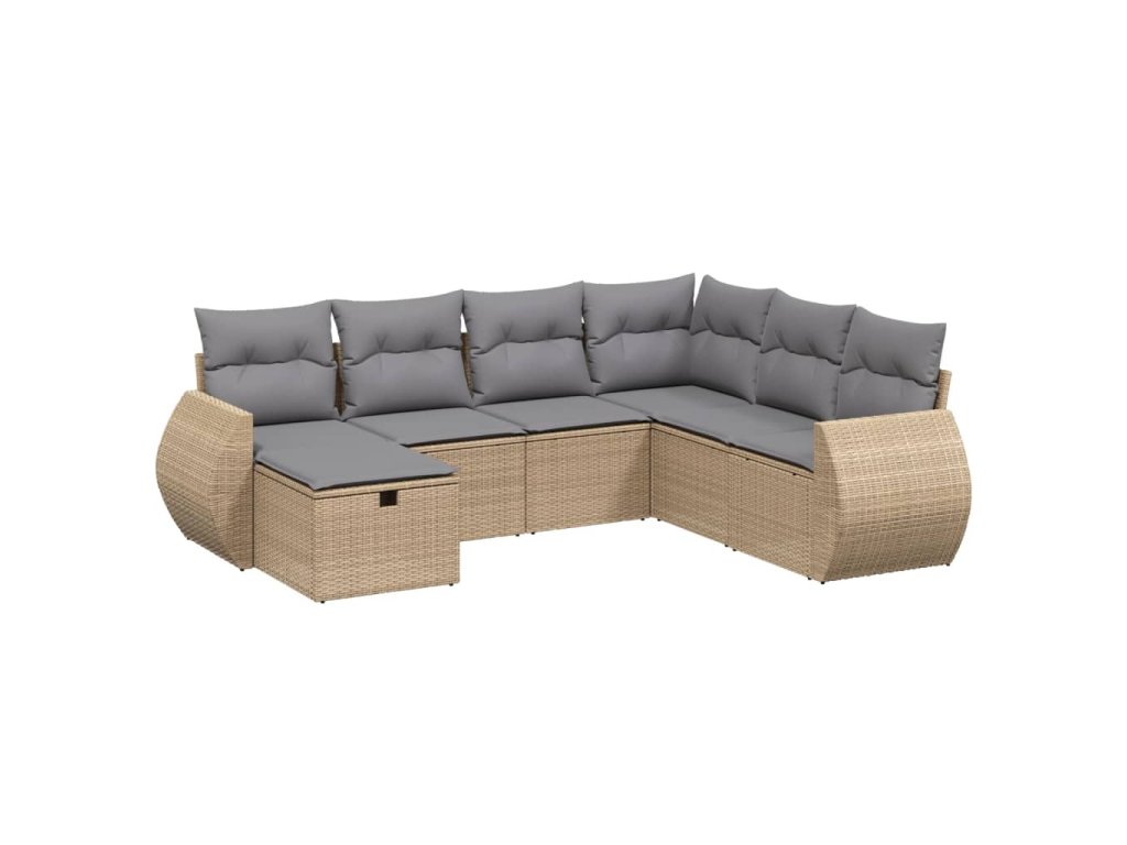 vidaXL 7-dielna záhr. jedálenská sada s vankúšmi mix béžovej polyratan