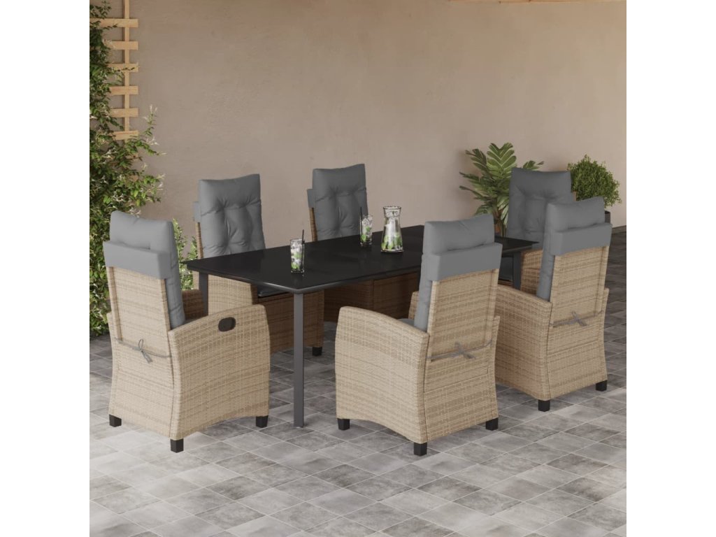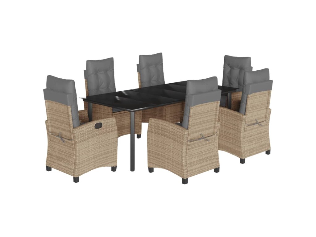 vidaXL 7-dielna záhr. jedálenská sada s vankúšmi mix béžovej polyratan