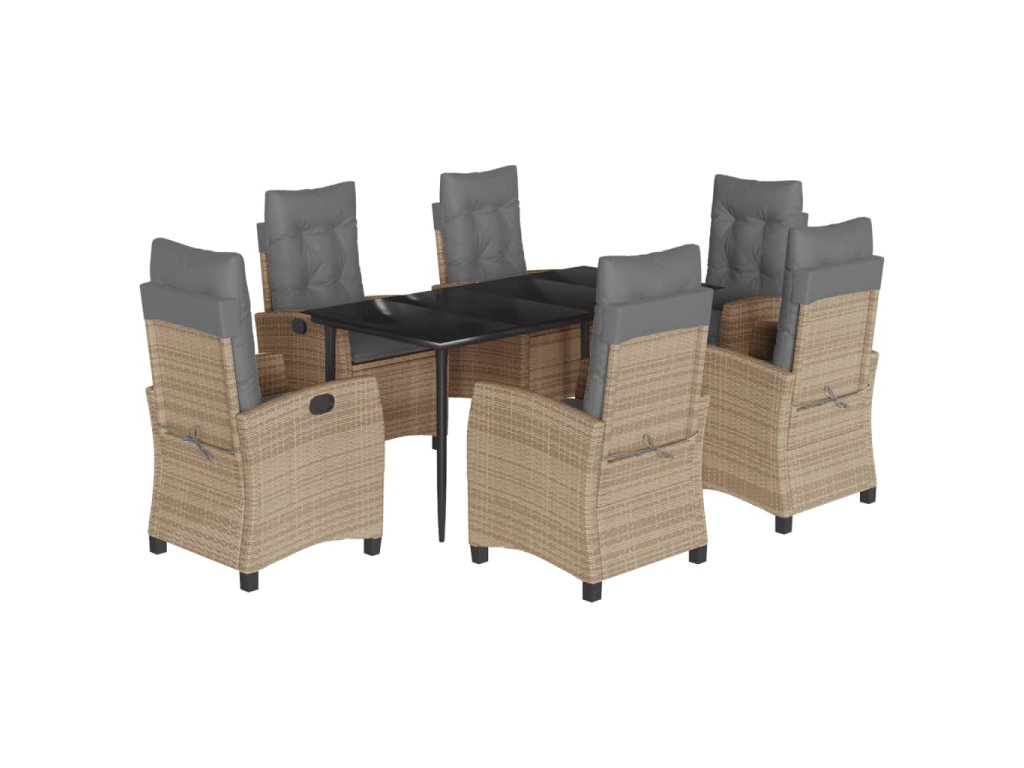 vidaXL 7-dielna záhr. jedálenská sada s vankúšmi mix béžovej polyratan