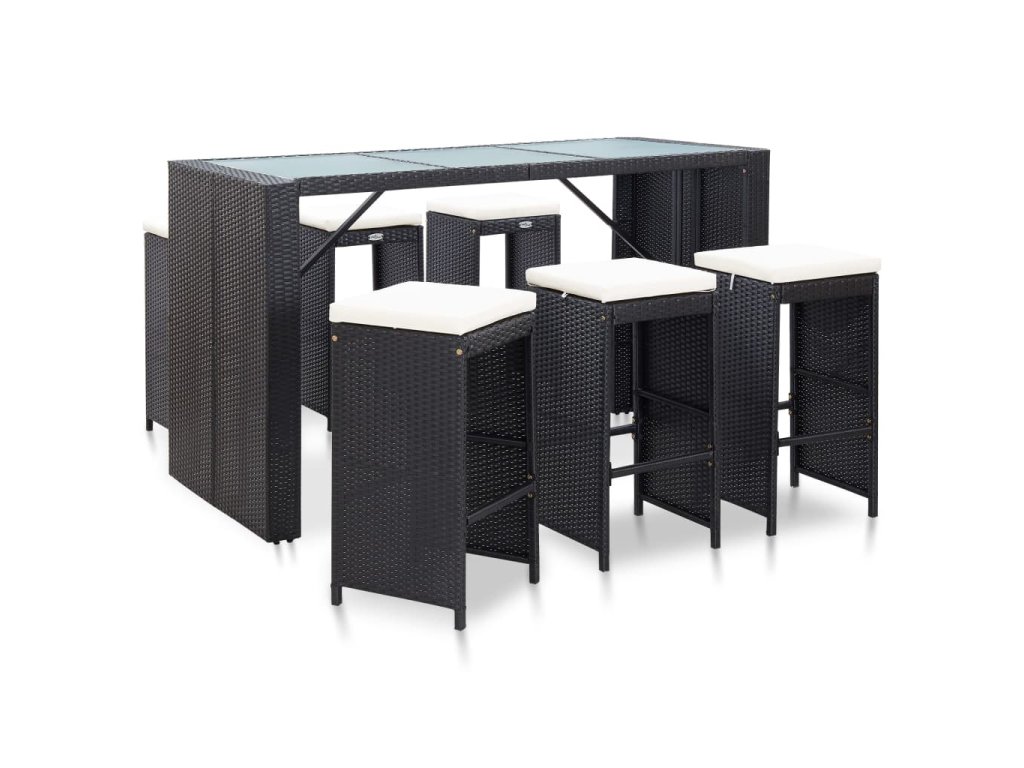 vidaXL 7-dielna záhradná barová súprava s vankúšmi čierna polyratanová