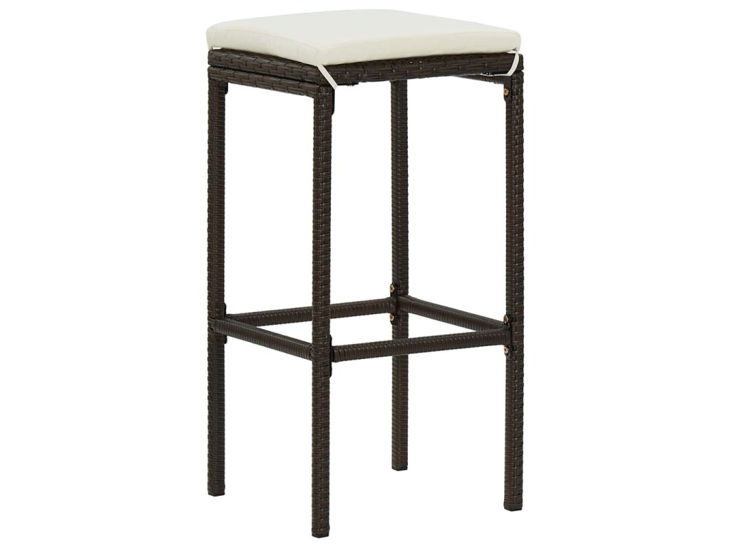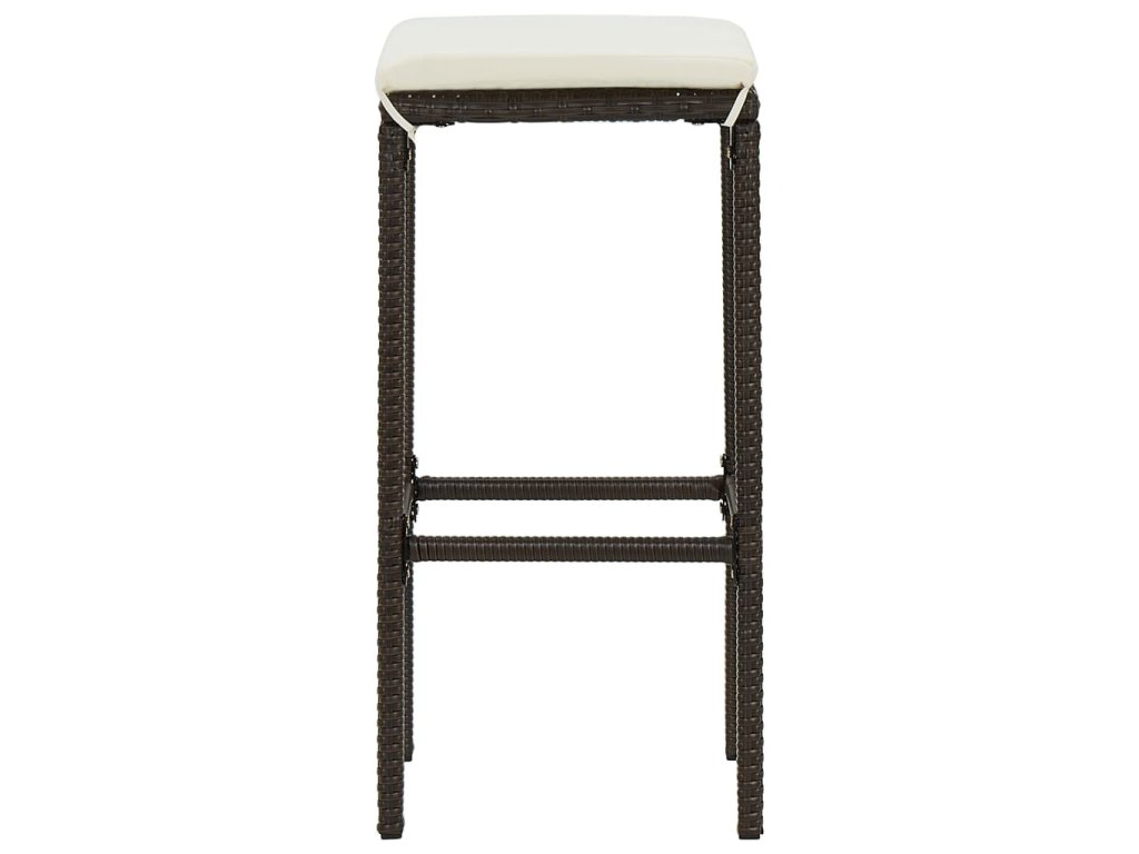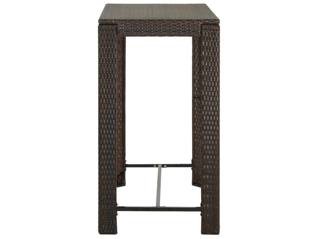 Barový stôl je opatrený oceľovým rámom s práškovanou povrchovou úpravou, vďaka čomu je stabilný a odolný. Štvorcová stolová doska je ideálna na položenie nápojov, jedla alebo dekoratívnych predmetov. Stoličky majú pevnú konštrukciu z oceľového rámu a sú vyrobené z PE ratanu odolného voči poveternostným vplyvom, čo zaisťuje ich stabilitu a ľahké premiestňovanie. Vankúš a opierka nôh tiež zvyšujú pohodlie pri sedení na stoličke. Poťah vankúša z polyesteru so skrytým zipsom uľahčuje čistenie.