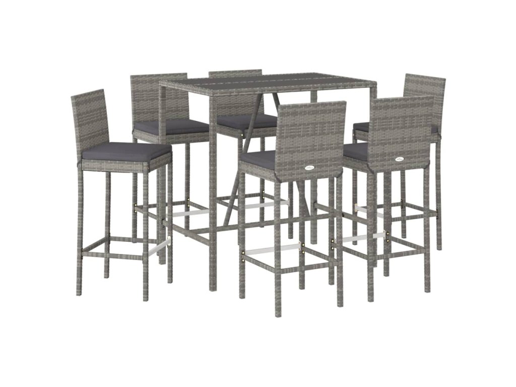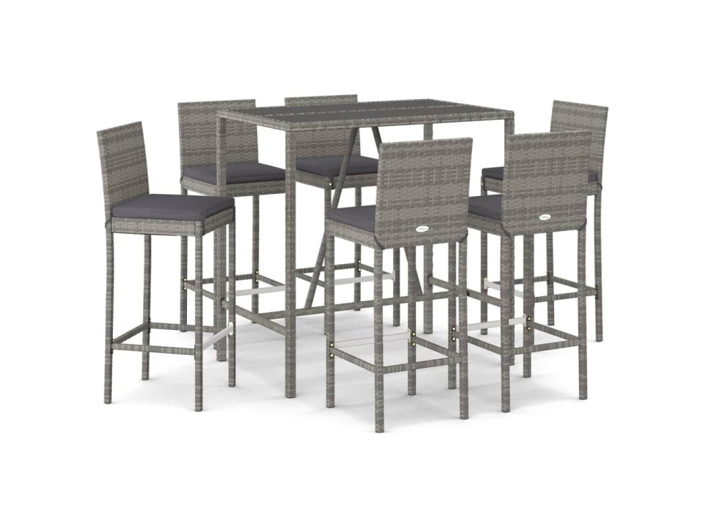 vidaXL 7-dielna záhradná barová súprava s vankúšmi sivá polyratanová