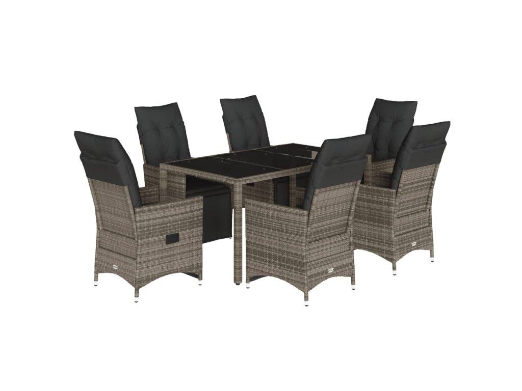 vidaXL 7-dielna záhradná bistro súprava s vankúšmi sivá polyratan