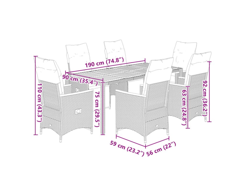 - Materiál: PE ratan, oceľ, masívne akáciové drevo s olejovým náterom