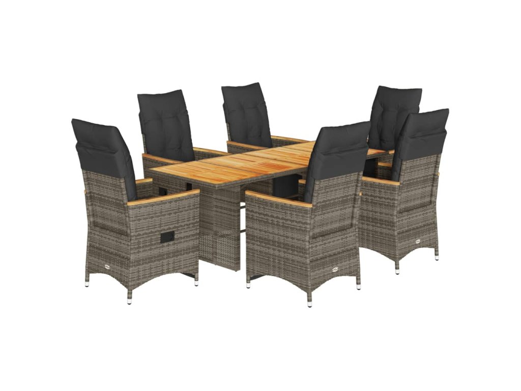 vidaXL 7-dielna záhradná bistro súprava s vankúšmi sivá polyratan