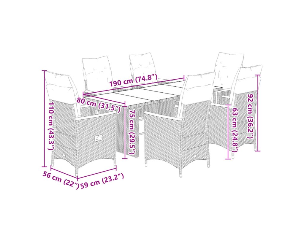 - Rozmery: 190 x 80 x 75 cm (D x Š x V)