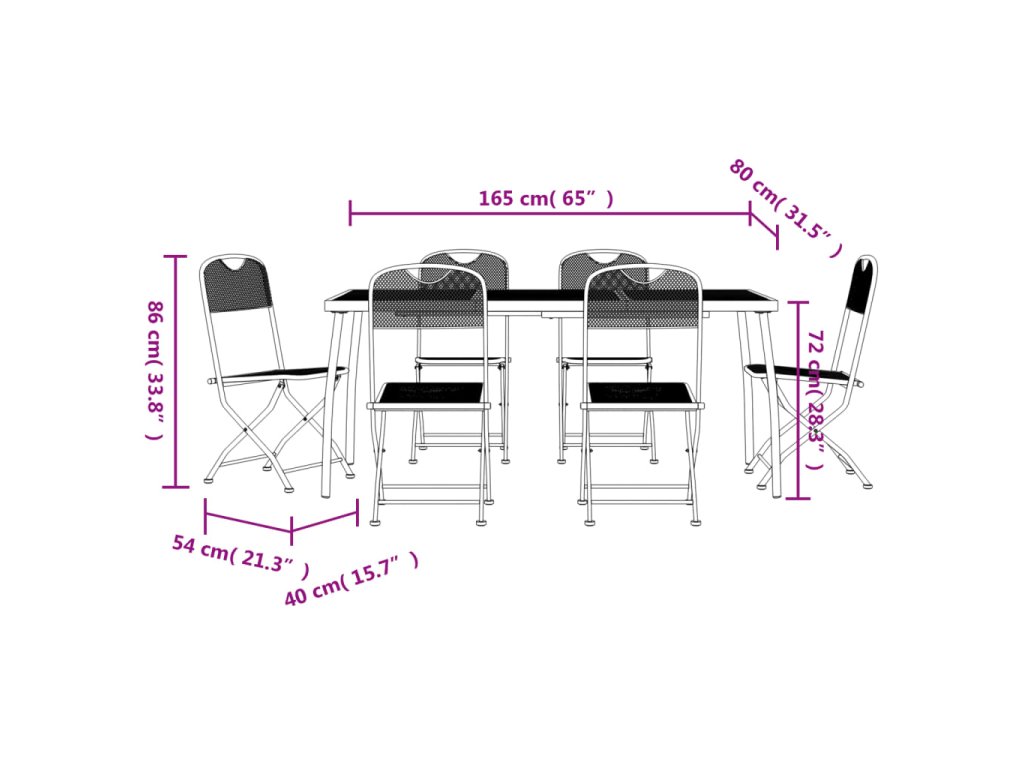 vidaXL 7-dielna záhradná jedálenská sada antracitová kovová sieťovina