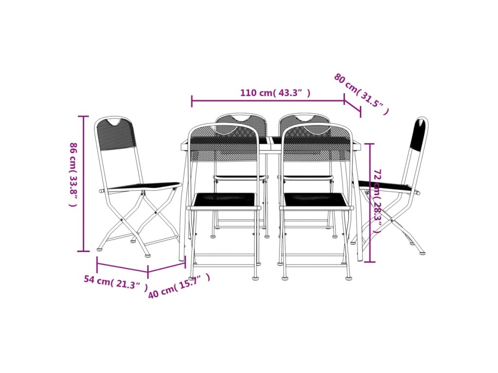 vidaXL 7-dielna záhradná jedálenská sada antracitová kovová sieťovina