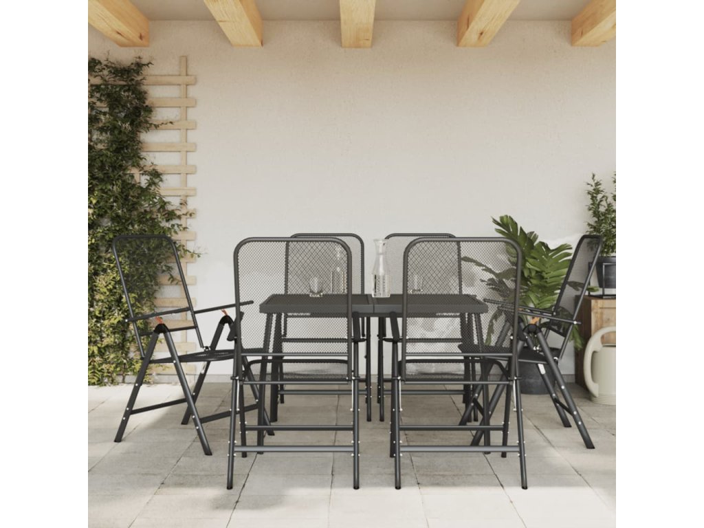 vidaXL 7-dielna záhradná jedálenská sada antracitová kovová sieťovina