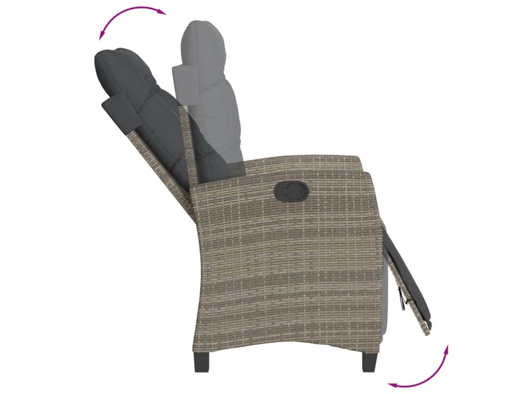 - Nastaviteľné operadlo a podnožka: Toto záhradné sedadlo má rukoväť. Opierku chrbta a podnožku môžete nastaviť do ľubovoľnej polohy zatiahnutím za rukoväť a rýchlo ich vrátiť do pôvodnej polohy.